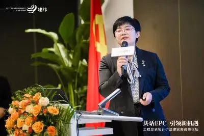 本环节由建纬郑州办公室合伙人江海洋律师主持,河南造价协会副会长魏冬梅主讲《 EPC 项目管理要点浅谈》,建纬郑州办公室工程总承包部部长吴娜丽主讲《建设工程总承包项目的价款调整解析-以济南某 EPC 项目为案例》,两位领导的演讲思路清晰,发人深省。