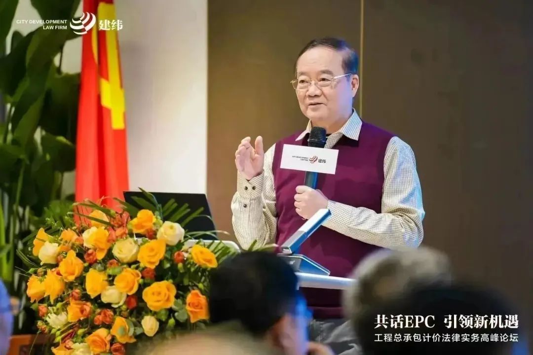 在下午场,建纬研究院院长朱树英莅临现场,以《化解EPC合同固定价格风险应适用的法律原则》为题,条分缕析、抑扬顿挫地向大家分享了EPC合同适用固定价格对总承包人带来的重大风险、化解价格固定风险应适用的四项法律原则等内容,现场掌起了热烈掌声。
