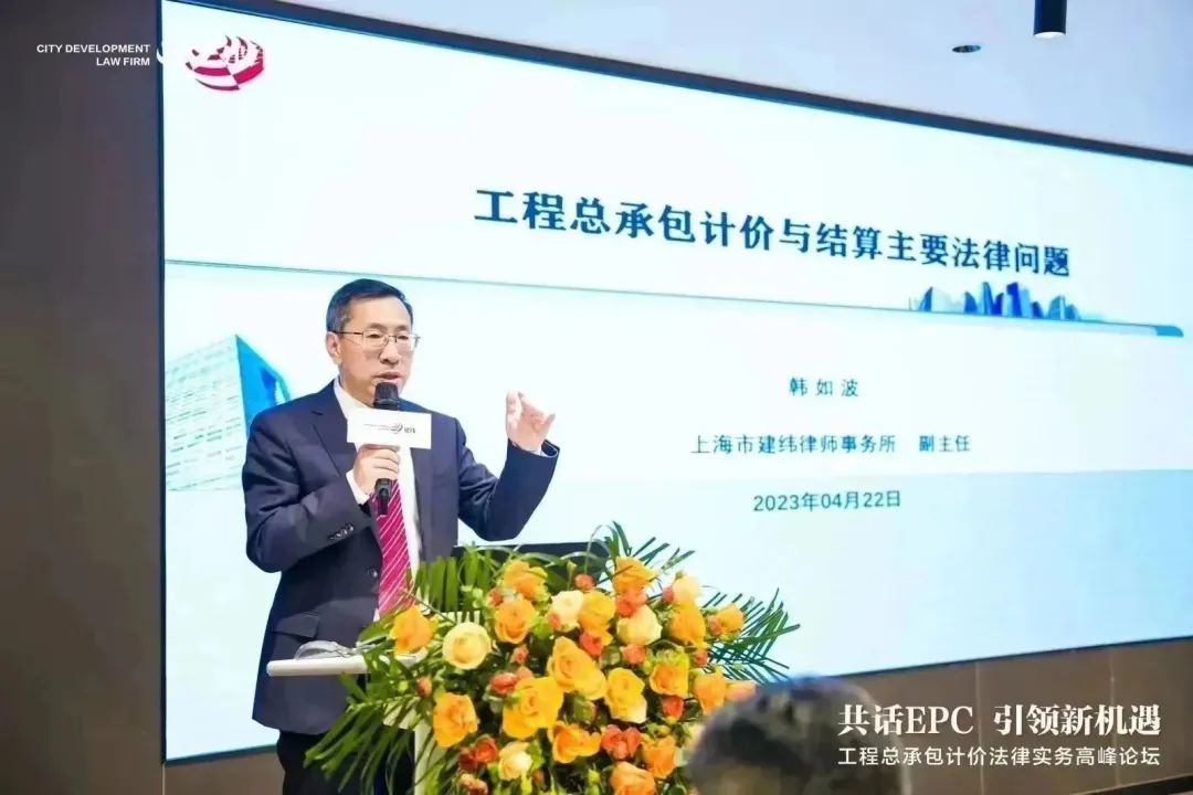 论坛研讨环节由建纬郑州办公室晋一巍律师主持,建纬律师事务所副主任、工程总承包业务部主任韩如波以《工程总承包计价与结算主要法律问题》为题进行分享。