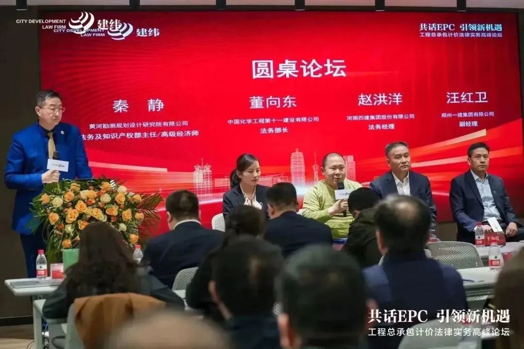本环节由建纬郑州办公室合伙人江海洋律师主持,河南造价协会副会长魏冬梅主讲《 EPC 项目管理要点浅谈》,建纬郑州办公室工程总承包部部长吴娜丽主讲《建设工程总承包项目的价款调整解析-以济南某 EPC 项目为案例》,两位领导的演讲思路清晰,发人深省。