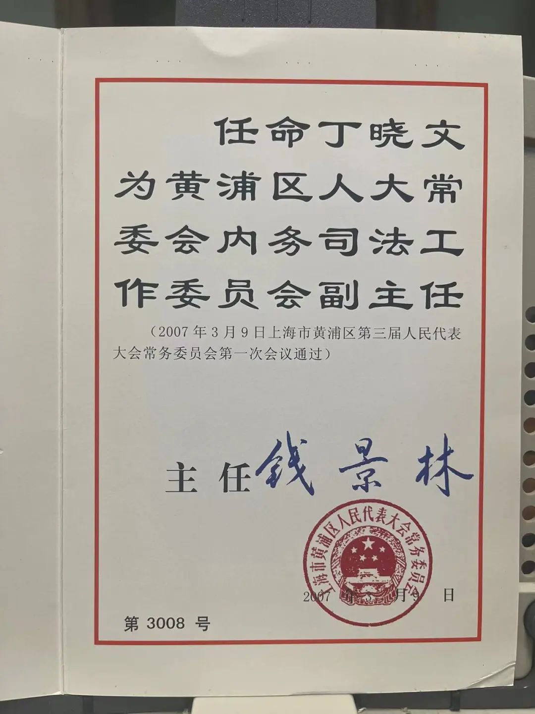 丁晓文担任黄浦区人大常委会内务司法工作委员会副主任