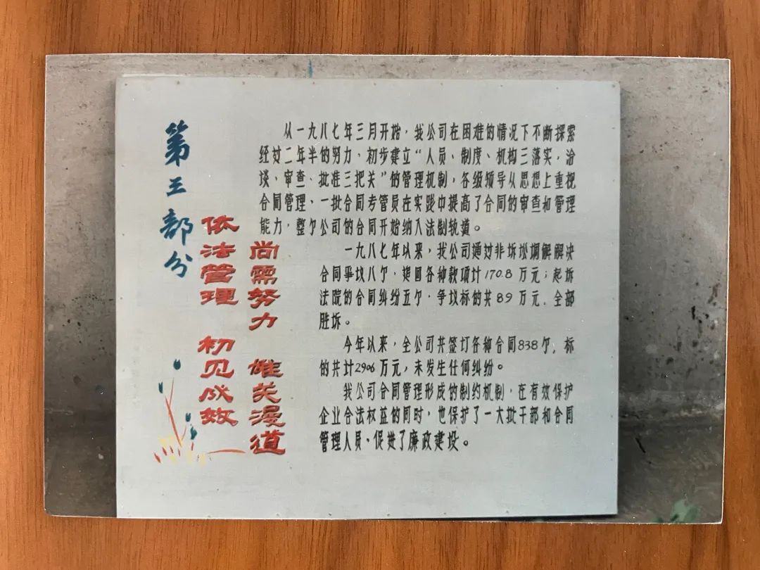 二、首创企业合同洽谈、审查、批准三权分离的管理制度之后,在1989年的市、区两级“重守”先进单位的企业申报评选材料中,我发现八建公司的合同管理又上了新台阶,他们首创了建筑施工企业合同洽谈、审查、批准三分离和两级合同审查的管理制度,这是一套完整的适合国有施工企业合同管理的制度创新。我对此产生了浓厚的兴趣,认为“这项创新经验值得好好总结”,于是第二次来到八建公司进行调研。