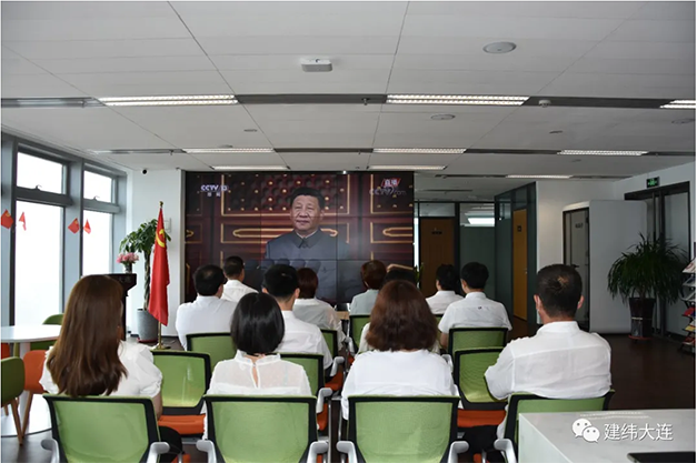 2021年7月1日上海市建纬(大连)律师事务所举办观看《庆祝中国共产党成立100周年大会》直播活动。律所主任汪丽清、党支部书记张少泽及律所律师参加活动并观看直播。