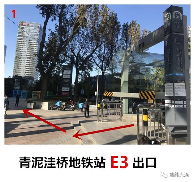 大连北站地铁站-C口乘坐11站→西安路地铁站换乘2号线(站内换乘)→青泥洼桥地铁站-E3口出→向北步行259米到达大连中心裕景5A甲级写字楼。